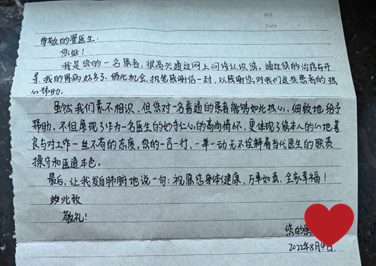 患者孙女士(化名)在我院互联网医院挂号时预约到翟兴红医生的号源,从此开启了线上医患交流模式,“虽然我们素不相识,但您对一名普通的患者如此热心。”孙女士在翟医生的治疗与开导下,胃病明显缓解,特地手写了一封感谢信送到了医院。两位患者用心写下的“感谢信”,即是对翟医生最大的认可和肯定。