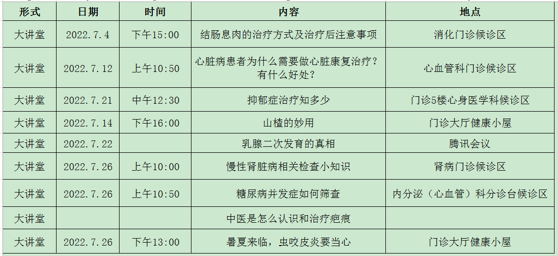 健康大讲堂2022年7月安排