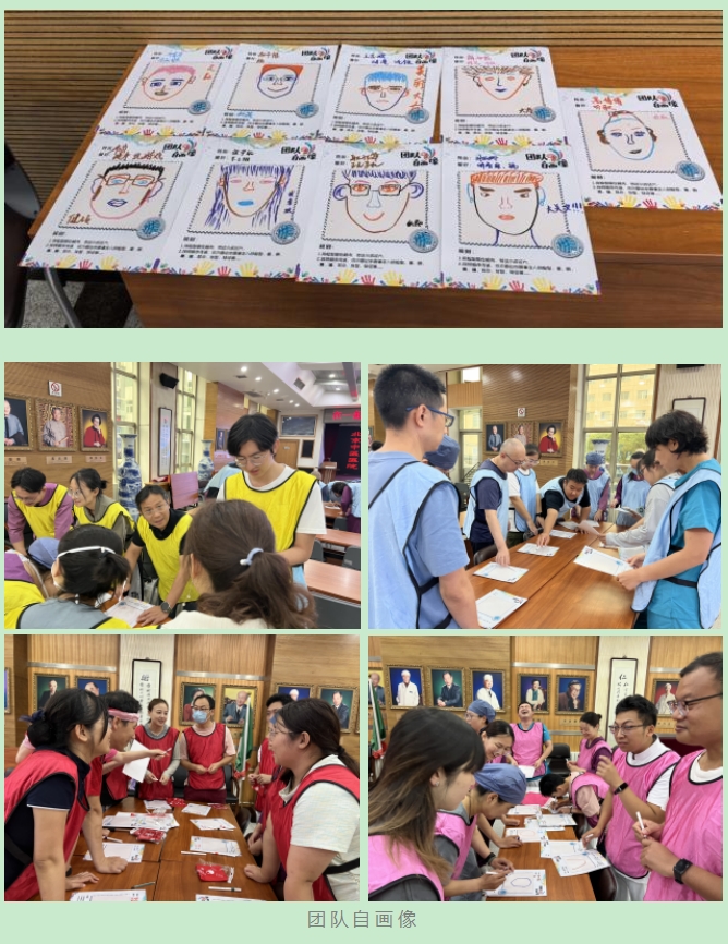 之后,团队成员按照既定的分组围成一圈,每人获得一张卡纸。在纸上写上自己的名字和爱好,向小组成员简单介绍自己。然后,将纸张依次向右传递,同队的伙伴依次在纸张上画上队员的脸庞、五官等。在绘画过程中大家快速熟悉彼此,迅速拉近关系,气氛热烈。
