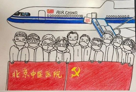 援鄂医疗队队员们在武汉抗击新冠疫情,他们的情况牵动着全院职工的心。大家通过各种报道了解队员们的消息。青年护师米悦更是如此,通过院团委微信公众号“宽街小郎中”连载的《天骄战记》,看到援鄂医疗队队员王天骄在战疫中的成长历程,为这个比自己还小的“90后”护士小姐妹感到骄傲和自豪,更被队友们的深厚情谊深深感动。米悦说:“医疗队出征那天,我也参加了出征仪式,看到飞机下他们的照片,特别感动。他们是最美逆行者,是我心中的英雄,我要用自己的方式把那一刻记录下来,希望他们能够早些平安回来。”