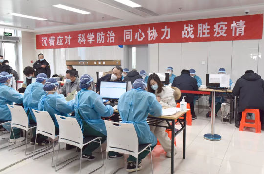 1月10日至15日,由我院40名医护骨干组成的新冠肺炎疫苗接种队,在大兴机场为大兴区重点人群接种新冠疫苗。6天内完成9176人的接种,圆满完成种苗任务。