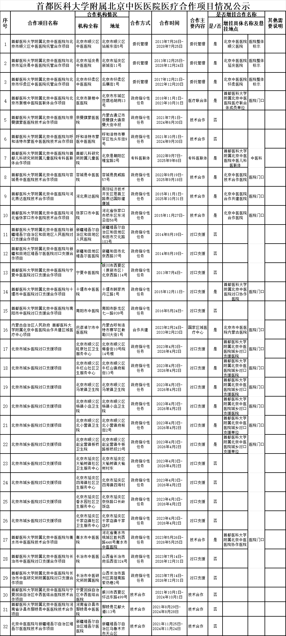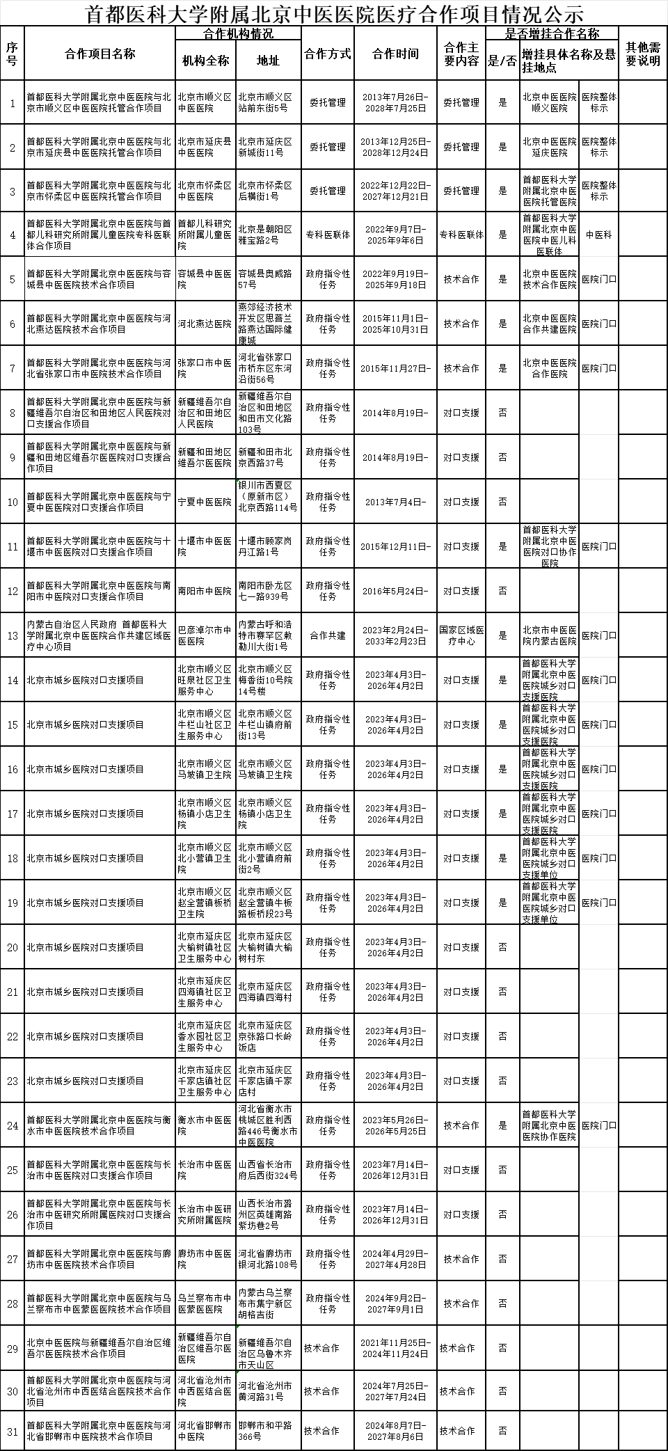 首都医科大学附属北京中医医院医疗合作项目情况公示