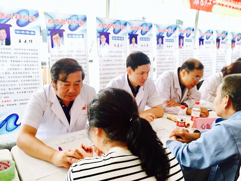6月24日,为持续深入贯彻“两学一做”,庆祝“七一”建党96周年,进一步加强城乡对口支援工作,深化基层中医药服务能力提升工程,切实解决人民群众看病就医的实际问题,将优势医疗资源下沉深入到基层,北京中医医院临一、临二、皮瘤研党支部联合怀柔区中医医院共同举办大型义诊咨询活动。北京中医医院17位专家携手怀柔区中医医院来到怀柔区燕城开展了大型义诊活动,让当地居民在家门口就可以看上三甲医院的专家号,将城区的优质医疗资源直接输送到基层农村,切实做到惠民利民。