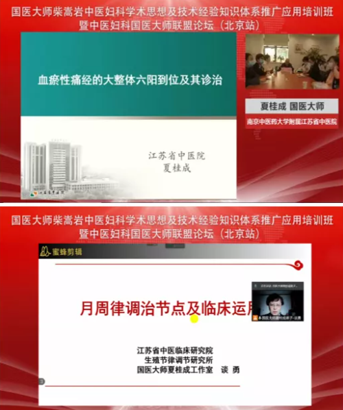 国医大师夏桂成以“血瘀性痛经的大整体六阳到位及其诊治”为题,从大整体六阳到位角度,阐述血瘀性痛经的病理变化,提出“排卵期调周是对痛经的治未病”学术思想。根据六阳不同而采用不同治则,整体观与个体差异紧密结合,体现了中医“同病异治”的立论体系。随后,国医大师夏桂成学术继承人谈勇教授以“月周律调治节点及临床运用”为题,全面总结夏老“月周律调治”节点的内涵,阐述夏老对阴阳消长转化各期生理变化规律的认识、临证经验、六阴六阳周期性用药经验。夏桂成“月周律调治”理论为中医妇科学术发展提供了新思路,不仅可用治月经病、不孕症,亦可用治诸多与月经周期相关疾病。