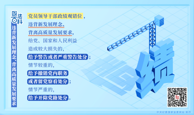 《中国共产党纪律处分条例》第五十七条规定:党员领导干部政绩观错位,违背新发展理念、背离高质量发展要求,给党、国家和人民利益造成较大损失的,给予警告或者严重警告处分;情节较重的,给予撤销党内职务或者留党察看处分;情节严重的,给予开除党籍处分。
